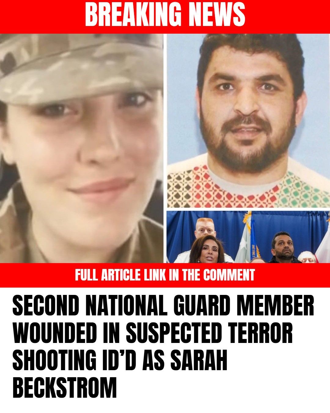 The sterile hum of ventilators and the soft beep of monitors filled Room 412 at MedStar Washington Hospital Center on the evening of November 26, 2025, as Sarah Beckstrom’s family gathered around her bed, their hands clasped in a circle of quiet hope. At 29, the West Virginia National Guard sergeant— a mother of one with a laugh that could light up the darkest drill hall—lay bandaged and brave, her chest rising steadily after emergency surgery for wounds sustained in the midday ambush that claimed two comrades’ lives just blocks from the White House. Beckstrom, identified late that afternoon by the FBI as the second Guardsman hurt in the Farragut Square shooting, became the face of resilience amid tragedy, her story a beacon for a nation reeling from the loss of Sgt. Michael Harlan and Staff Sgt. Elena Vasquez. For her husband, Jake, who held her hand through the haze of pain meds, and their 5-year-old son, Noah, waiting back in Beckley with grandparents, the hours blurred into a prayerful vigil—a testament to the unyielding spirit of those who serve, even as investigators pieced together a suspected terror plot that left D.C.’s streets on edge.
