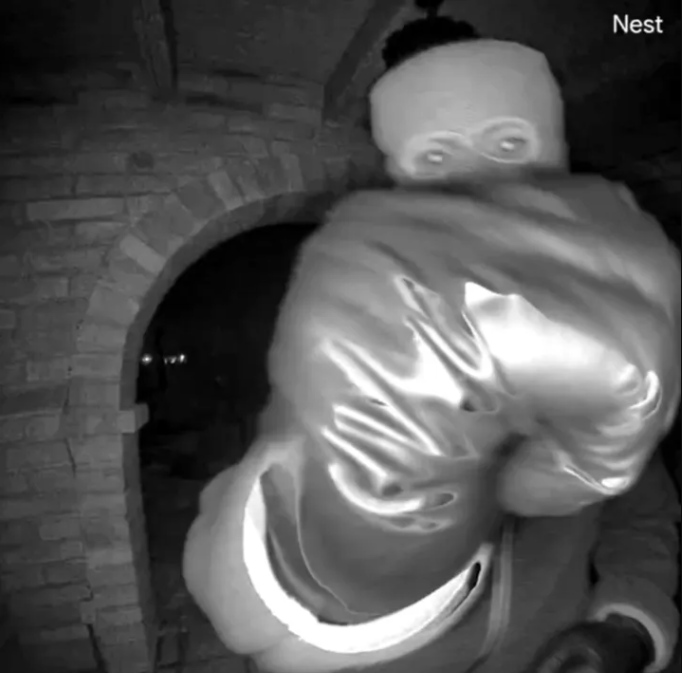 Footage also shows the figure pulling a plant from the lawn and shoving it directly in front of the camera, effectively obscuring the view. At one point, authorities say the person appears to be holding a flashlight in their mouth while working to disable the device.