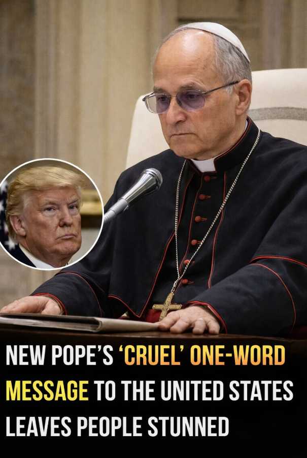 In a place known for tradition, formality, and carefully chosen words, a single moment unexpectedly captured worldwide attention. Just days into his papacy, Pope Leo XIV delivered a response so brief that it instantly stood out. During a Vatican press conference watched closely by international media, the Chicago-born pontiff was asked a question many Americans were eager to hear: did he have a message for the United States? After a brief pause, he smiled and replied with one word—simple, deliberate, and impossible to ignore.